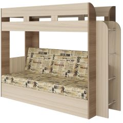 Кровать 2-х ярусная с диваном Карамель 75 (Газета) Ясень шимо светлый/темный | мини фото 1
