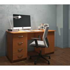 Стол «Сити 3» подойдет для детской комнаты в качестве рабочего места ребенка, а также отлично выполнит роль компьютерного стола. Прочный материал ЛДСП, надежная фурнитура и крепления обеспечат долгий срок службы этому предмету мебели. Строгие линии и спокойный светло-коричневый цвет не отвлекают внимание и настраивают на рабочий лад. Стол отличается вместительностью: в три выдвижных ящика, расположенных слева, можно положить книги, учебники, документы, канцелярию, а ящик с распашной дверцей станет дополнительным местом для хранения необходимых в работе и учебе вещей. На нашем сайте вы найдете широкий выбор качественной мебели по разумной цене. Стол «Сити 3» вы можете купить всего в пару кликов.