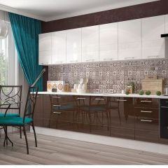 Кухонный гарнитур Люкс 3500 Белый глянец/Шоколад глянец (модульный) Горизонт | мини фото 2