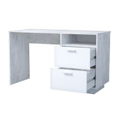 Стол Эго Ст-3 Стол письменный с 2мя ящ (бетон светлый/белый глянец) на ножках