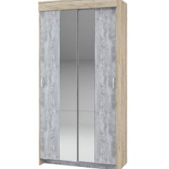 Шкаф-купе Бассо 1.0 (Дуб Крафт серый/Бетонный камень) 2 двери ЛДСП 2 зеркальные вставки