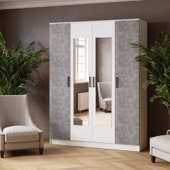 ЛАРС Шкаф комбинированный 1,6 с зеркалом Белый/Ателье светлое